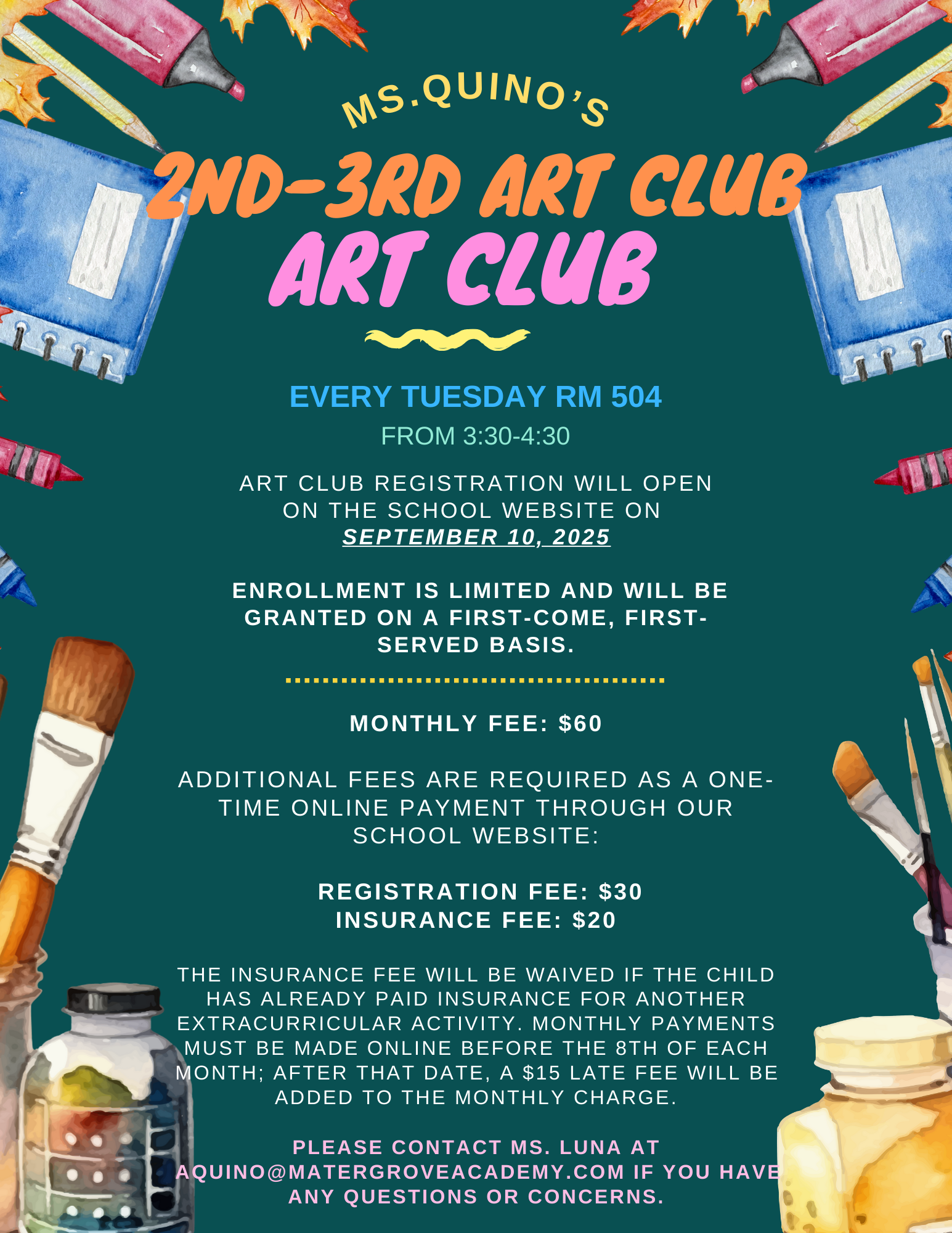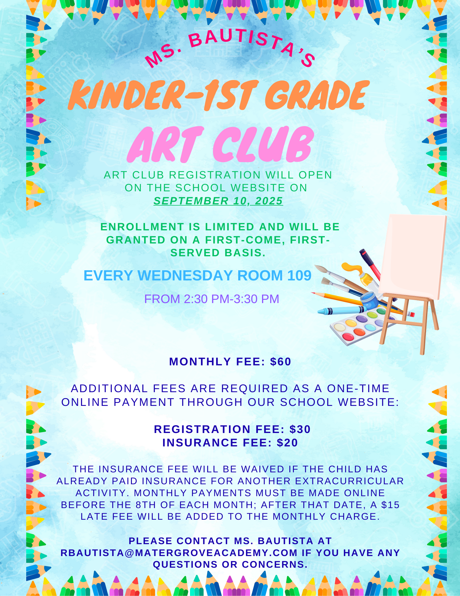 Art Club Kinder and 1st Grade only